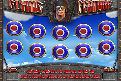 Keep choosing from the 10 targets until you find the Red Baron - he will end your selections! Each target may reveal extra free games or a multiplier increase for your free games. Win up to 50 additional free games!