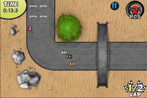 Blaze on 15 different tracks against 6 competitors in this turn&burn racing game for the iOS. Use every dirty trick in the book to your advantage such as shortcuts, teleports, electric weapons and nitro speed burst against your opponents to claim your name in fame and unlock even more exciting tracks.