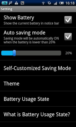 Self-Customized Saving Mode, user can adjust the battery saving setting freely to fit each one's needs.